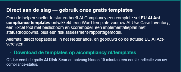 De EU AI Act deadline van augustus 2026 is dichterbij dan u denkt. Inventariseren, classificeren en documenteren kost tijd — en de meeste organisaties onderschatten dat. Begin nu met een eerste inventarisatie en een risicobeoordeling, zodat u in juli 2026 niet voor verrassingen komt te staan.
